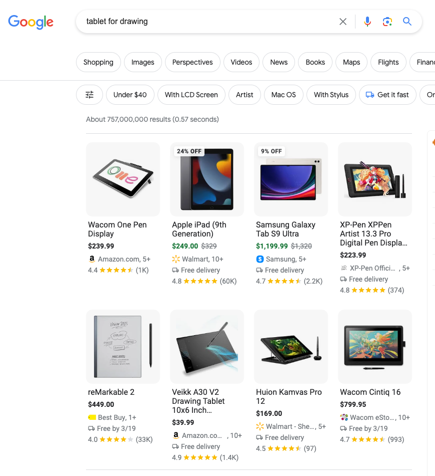- Shopping results